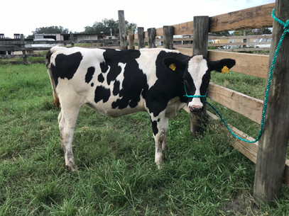 At the 2019 Manatee County Fair I will be exhibiting a diary heifer. I leased my heifer, a 7 month old Holstein I named Clarabella, from Dakin Dairy, and today I picked her up and brought her to the school that I keep her at. I haven't worked with her much yet, but already I can tell she is going to be a very sweet cow! It may be because I'm used to beef cattle which tend to (but aren't always!) be less docile than dairy cows, but I was pleasantly surprised when she let me walk up to and pet her after only having her for a few hours. I'm very excited for this fair project- both because I love cows and because it will be very interesting to learn the differences between beef and dairy when it comes to show and showmanship. A few differences I've learned thus far is that you use a show stick to set up beef cattle, but your foot to set up dairy, and that dairy cows are shaved completely, but beef cows are groomed to have a lot of fur so that you can make them appear more filled in.